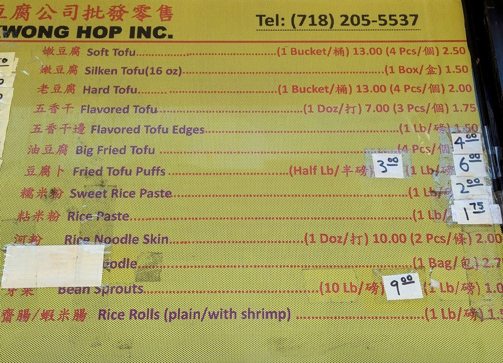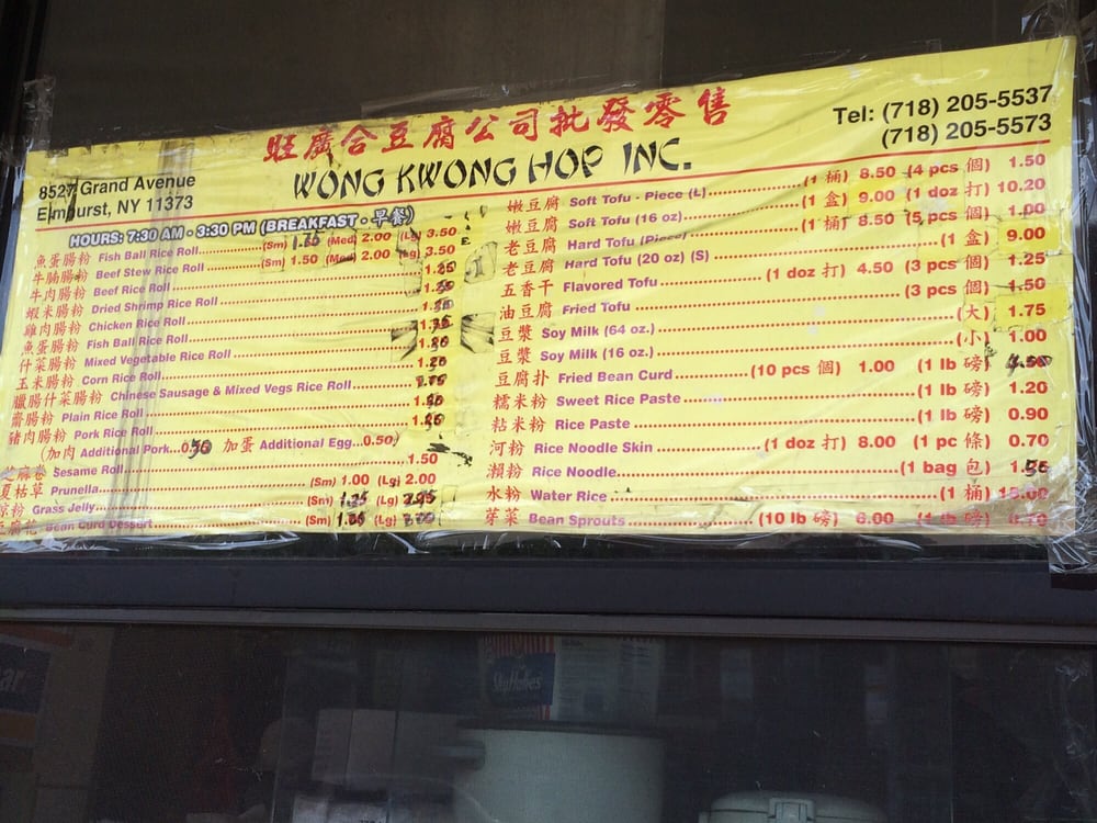 Wong Kwong Hop, a Chinese restaurant located in Elmhurst, NY, offers a variety of delicious entrees including rice noodles, bean sprouts, tofu puffs, and tofu desserts. Customers rave about the fresh soy milk, tofu products, and rice rolls made on-site. The tofu pudding and grass jelly are must-tries, while the rice rolls with various sauces are a highlight. The friendly staff provide quick service, making it a great spot for takeout. With no seating available, customers can enjoy their meal outside the store. Overall, Wong Kwong Hop is recommended for its authentic Chinese dishes and quality ingredients. If you're looking for fresh and flavorful Chinese cuisine, this is the place to visit.